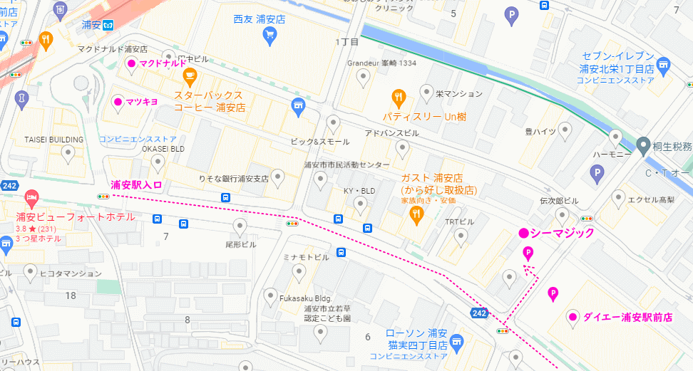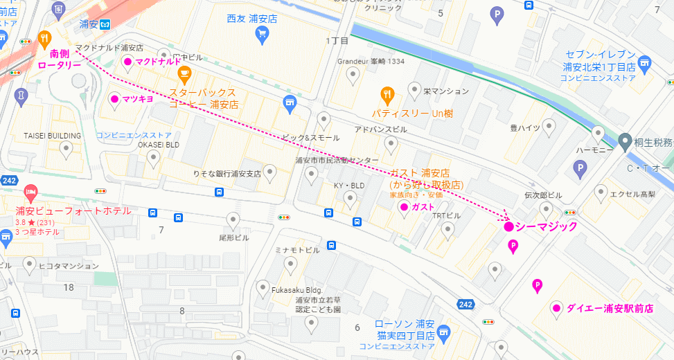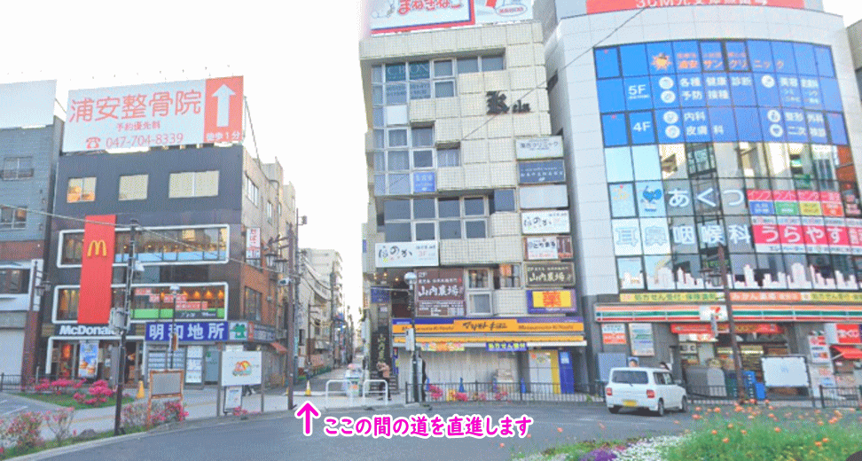 東京メトロ「浦安駅」 南側ロータリーの【マクドナルド】と【薬局 マツキヨ】の間を