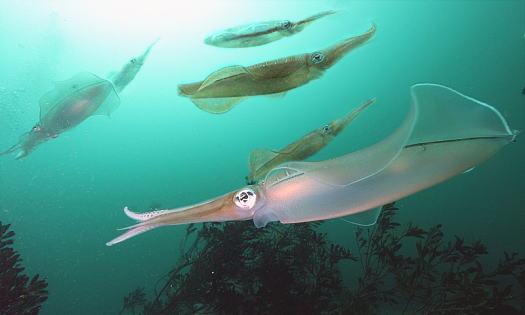 刻一刻と身体の色を変化させるアオリイカの姿はとても神秘的で目を奪われます。