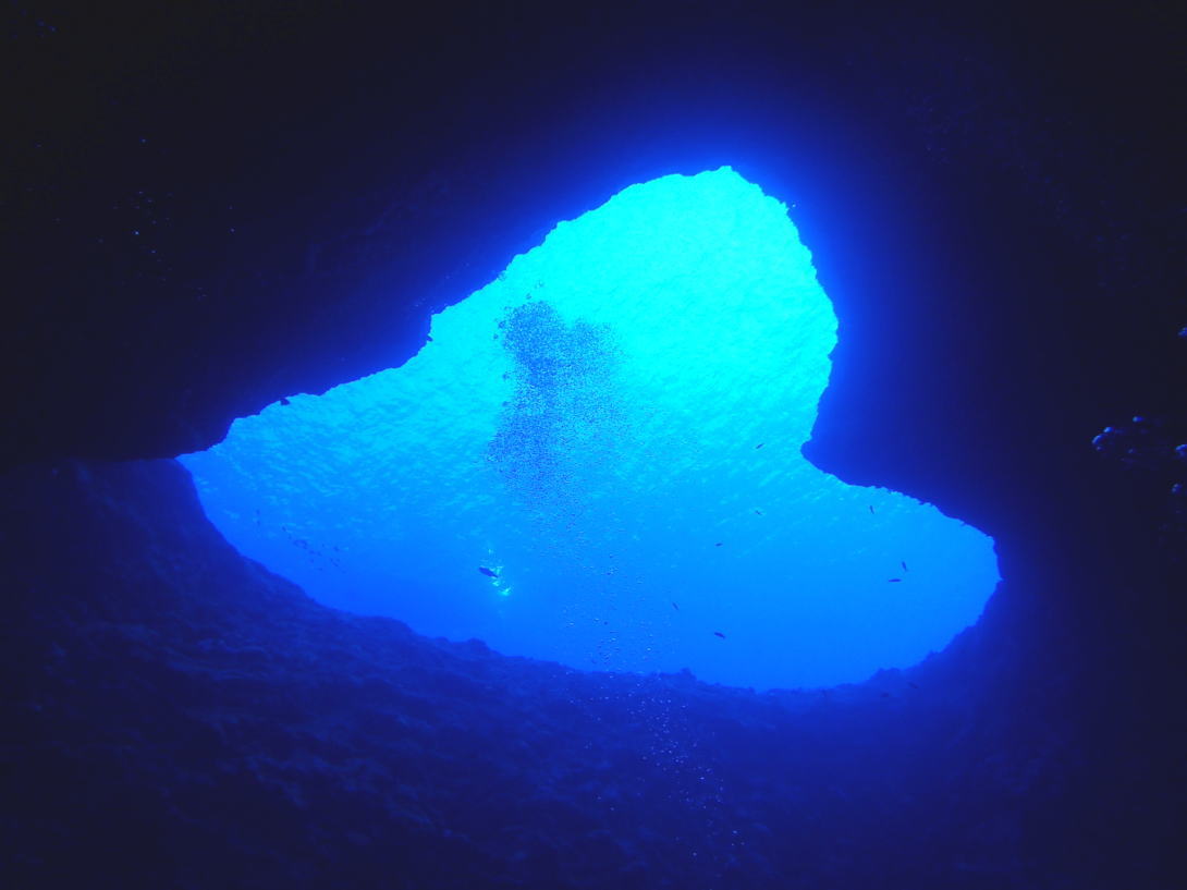 有名な、ロマンティックなハート型をした地形の「ブルーホール」や、観光用の潜水艦がくる