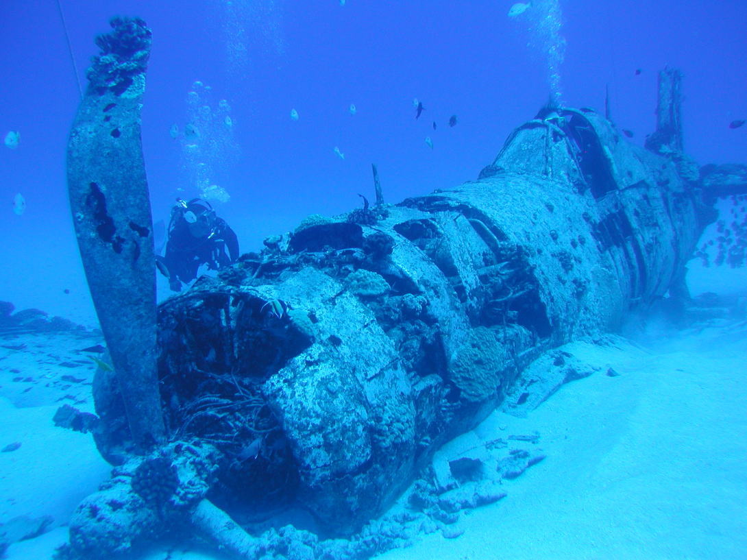 オアフ島の海です。第二次世界大戦で実際に使われていた戦闘機などのダイナミックな沈潜や