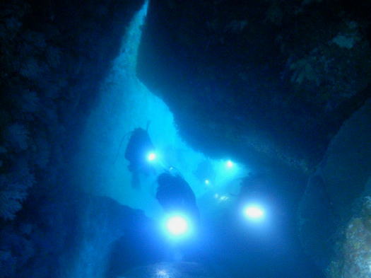 クレバスやケーブの潜り方を知る「海底洞窟コース」の受講をお勧めいたします。 |