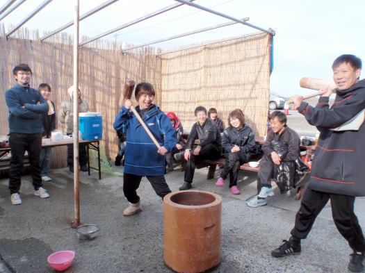 お餅つきをして、お雑煮・お汁粉・磯辺餅・きなこ・大根おろし等々、お好みの食べ方で