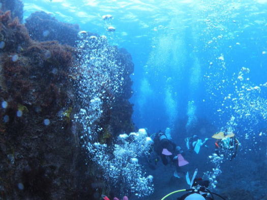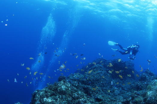 伊豆大島は、東京から高速艇でわずか1時間45分の離島です。黒潮の恵みを受ける水中は |