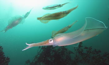 産卵期にやってくる巨大なアオリイカは、不思議が一杯です。 |