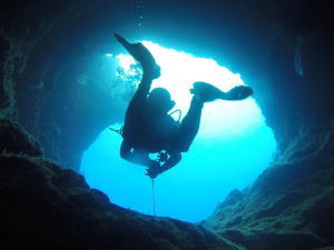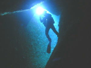 ダイナミックな地形の海底洞窟ポイントです。独自の地形と流れのあるこのポイントではクレバスや