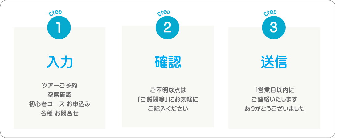 ツアー空席確認・ご予約・お問い合わせ等、下記フォームからお申込み頂けます。