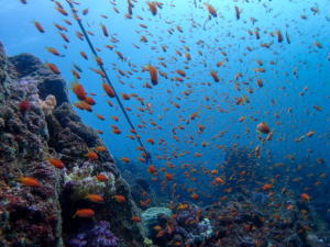 豪快なダイビングを体験できます。巨大な岩々は全て繋がっていて魚にとって格好の