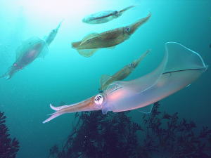 巨大なアオリイカが群れを成し幻想的な大自然のショーを迫力満点で繰り広げます。