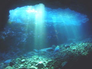豊富なお魚ポイントとしても有名な富戸。光と青の調和が美しい地形スポット「富戸ホール」も