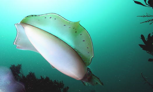 刻一刻と身体の色を変化させるアオリイカの姿はとても神秘的で目を奪われます。