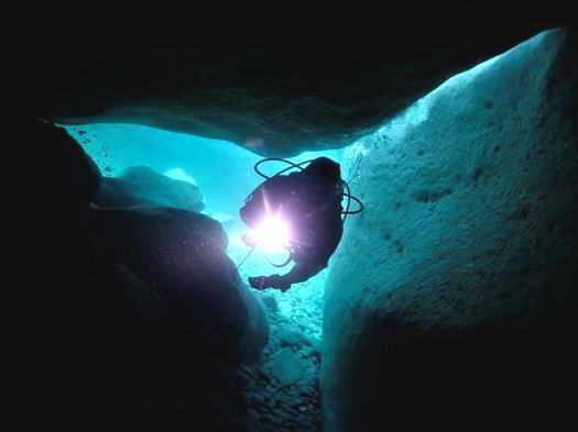 クレバスやケーブの潜り方を知る「海底洞窟コース」の受講をお勧めいたします。 |