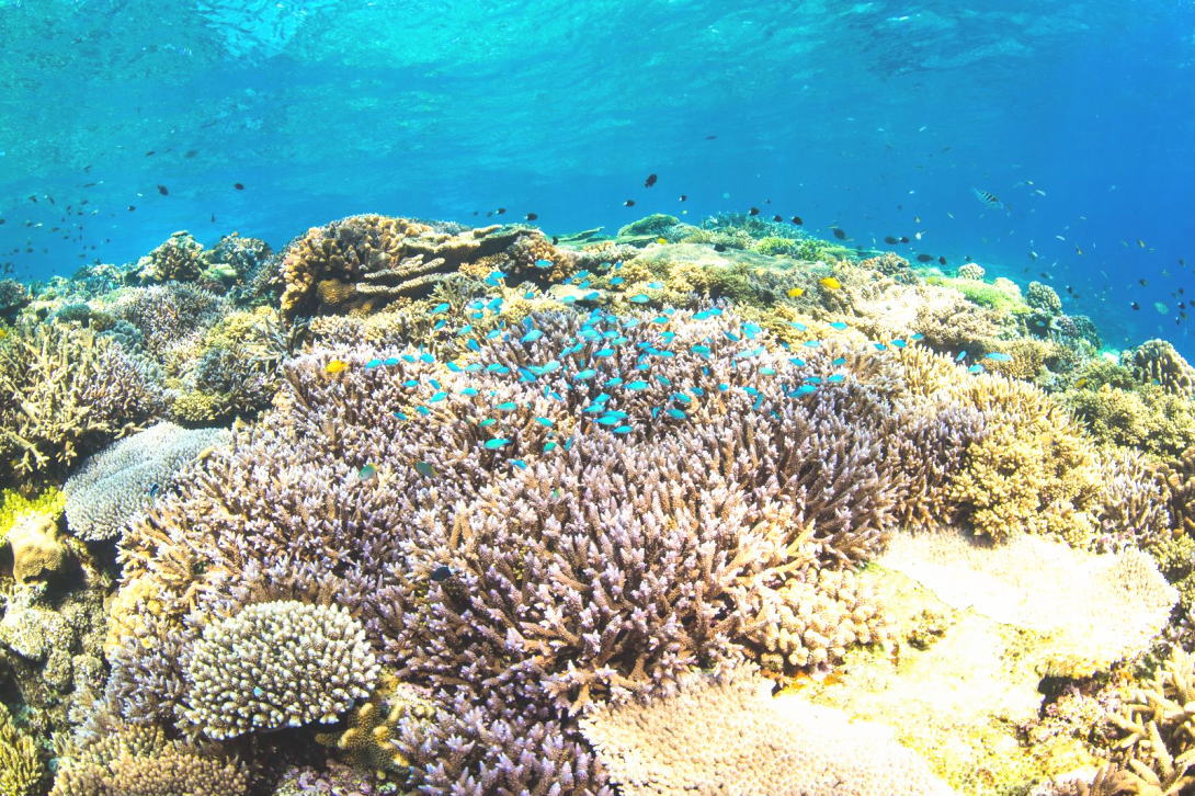 宝石の様に色鮮やかなトピカルフィッシュが群れている豊かで恵まれた海でしょう。
