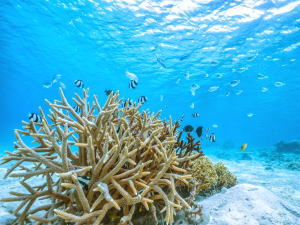 現在、自然災害による珊瑚の白化現象で壊滅的な被害を受けているサンゴ礁。