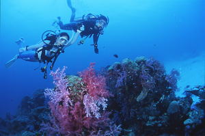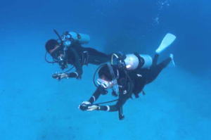水中では陸上よりも方向感覚がつかみにくいものです。インストラクターがなぜ元の場所に